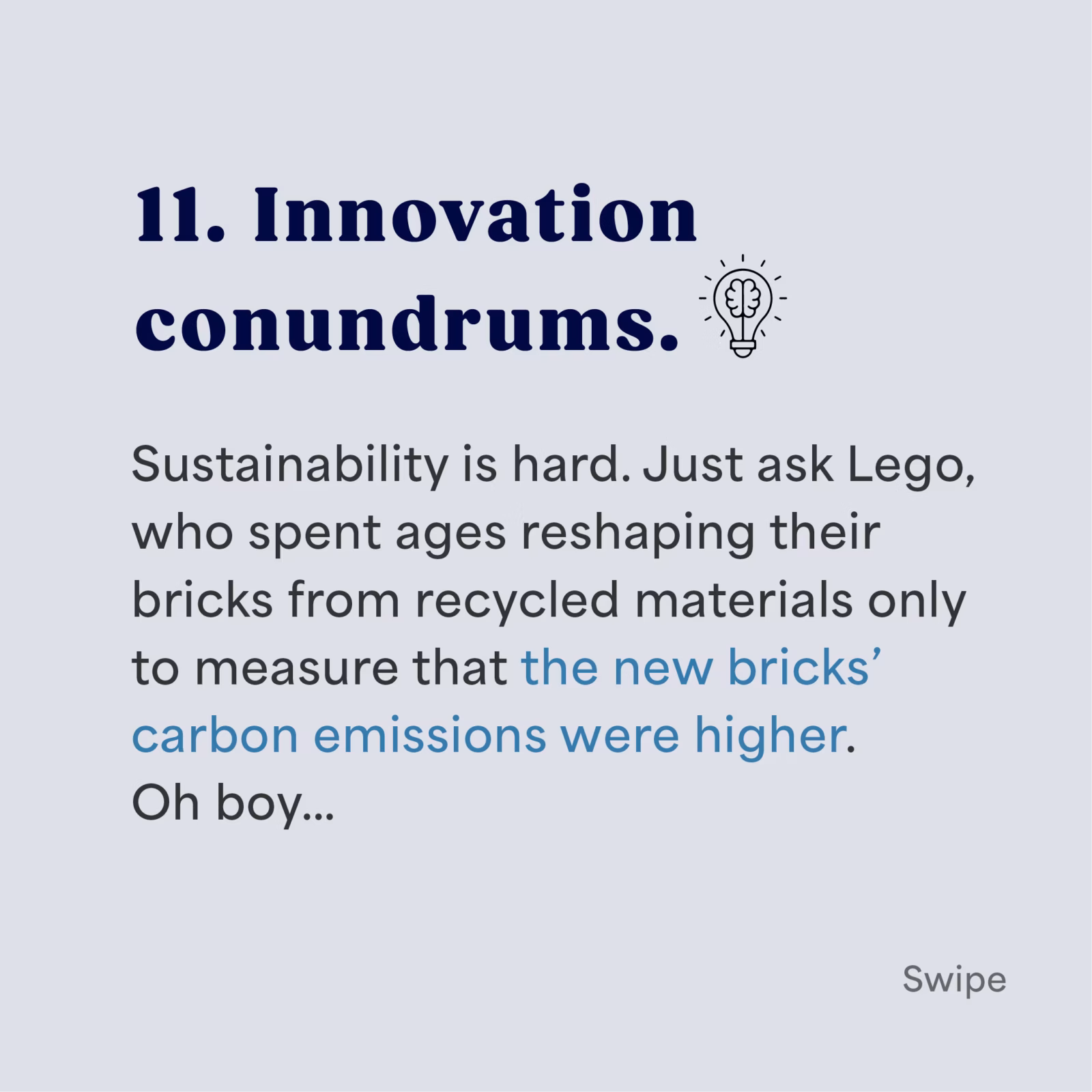 Sustainability is hard. Just ask Lego, who spent ages reshaping their bricks from recycled materials only to measure that the new bricks’ carbon emissions were higher. Oh boy…