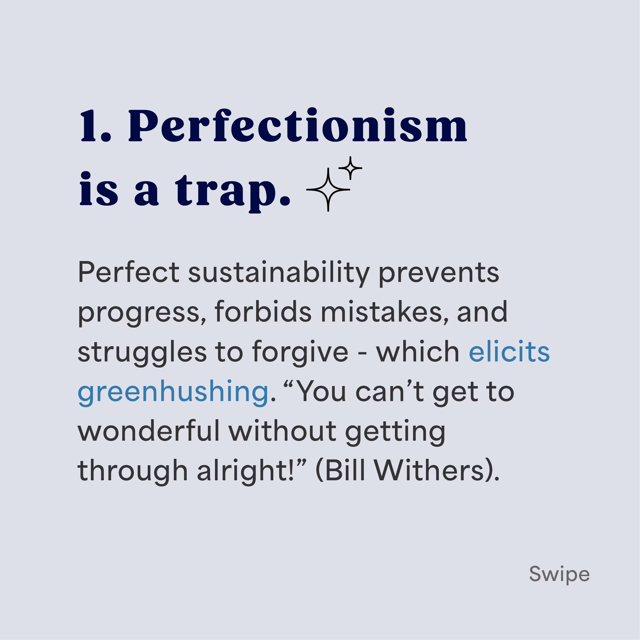 Perfect sustainability prevents progress, forbids mistakes, and struggles to forgive – which elicits greenhushing. “You can’t get to wonderful without getting through alright!” (Bill Withers).