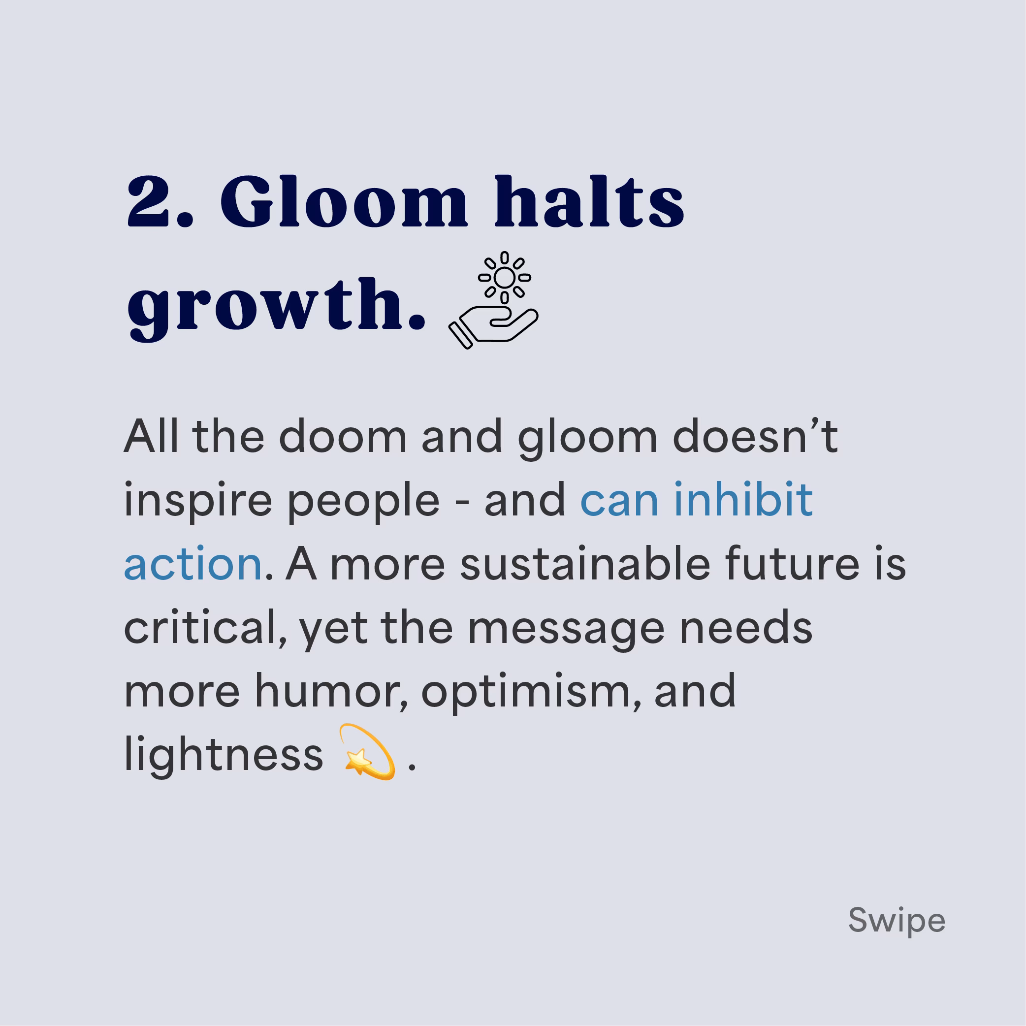 All the doom and gloom doesn’t inspire people – and can inhibit action. A more sustainable future is critical, yet the message needs more humor, optimism, and lightness 💫.