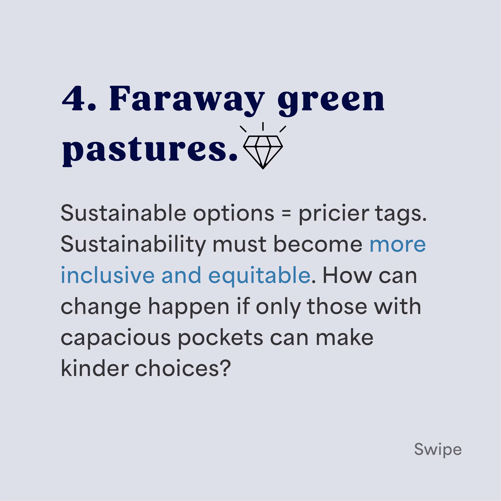 Sustainable options = pricier tags. Sustainability should become more inclusive and equitable. How can change happen if only those with capacious pockets can make kinder choices?