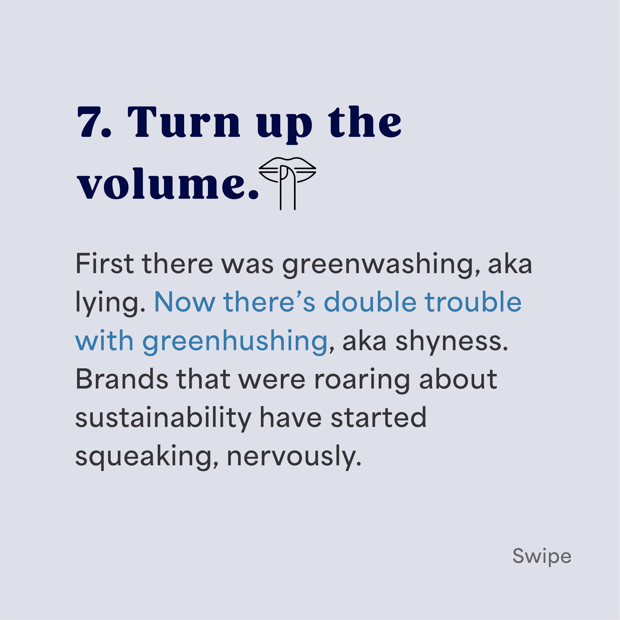 First there was greenwashing, aka lying. And now there’s double trouble with greenhushing, aka shyness. Brands that were roaring about sustainability before have started squeaking, nervously.